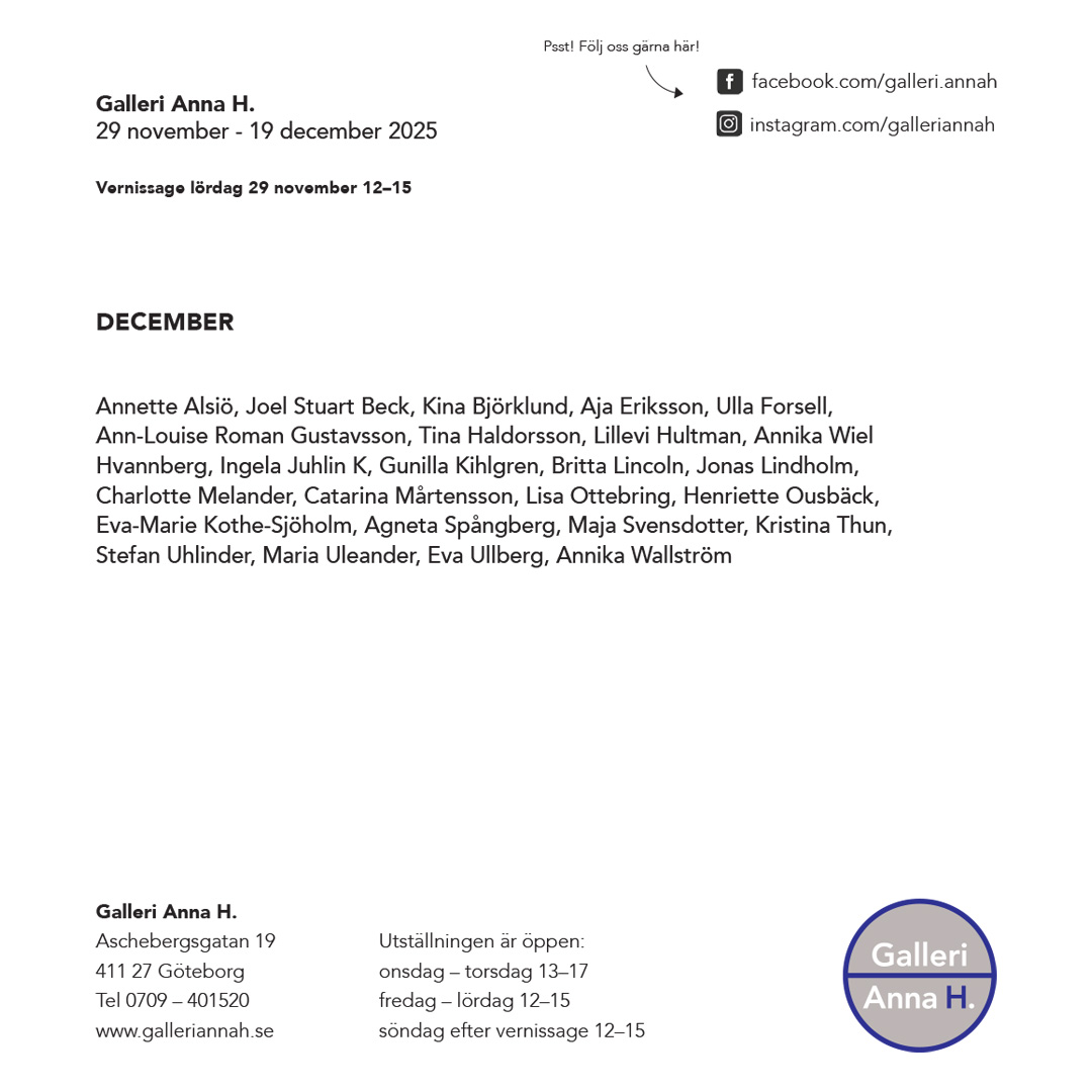 Vernissage: lör 29 nov 12—15